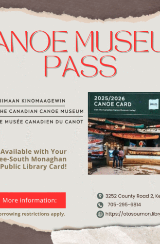 The Otonabee – South Monaghan Public Library respectfully acknowledges that the Williams Treaty First Nations are the stewards and caretakers of these lands and waters in perpetuity, and that they continue to maintain this responsibility to ensure their health and integrity for generations to come.”