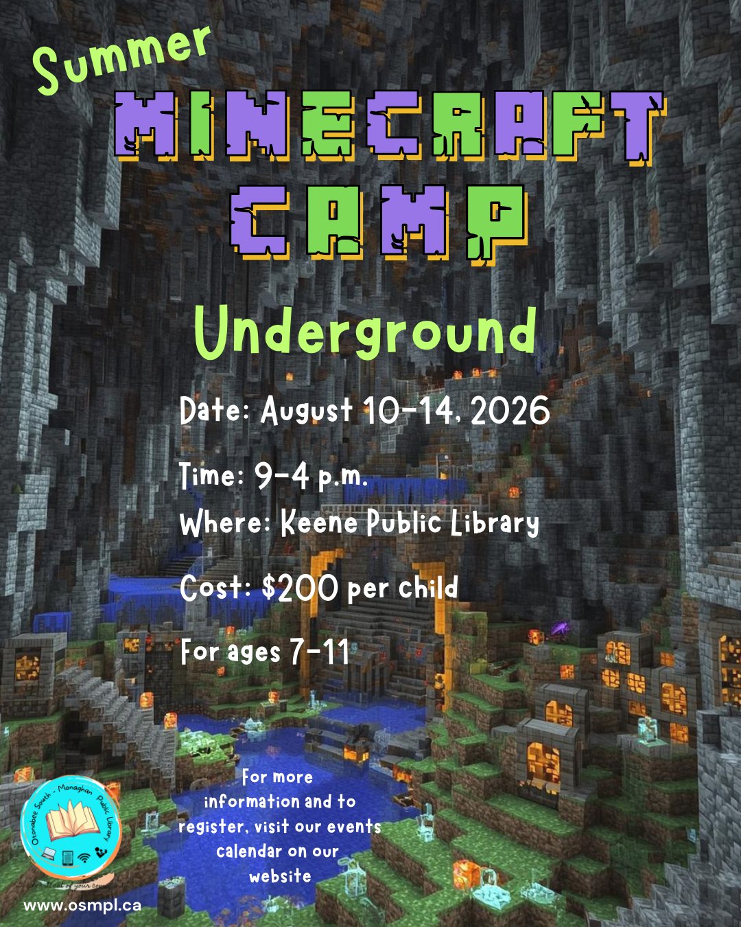 Dig deep into adventure this summer! Join us for Minecraft Camp: Underground, where creativity, teamwork, and exploration come together in a week of hands‑on fun. Date: August 10-14, 2026 Time: 9 - 4 PM Where: Keene Public Library Cost: $200 per child Ages: 7-11 What your child will need for Minecraft Camp: snacks and lunch […]