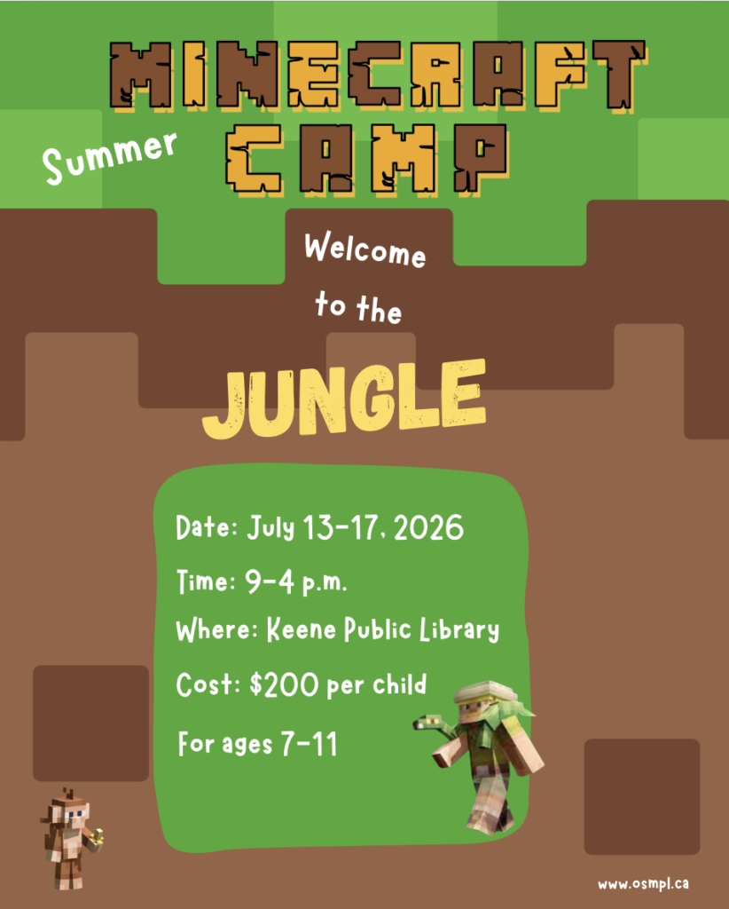 Get ready to build, explore, and survive the jungle! Minecraft Camp is back this summer at the Keene Branch- and this year we’re heading deep into the wild.